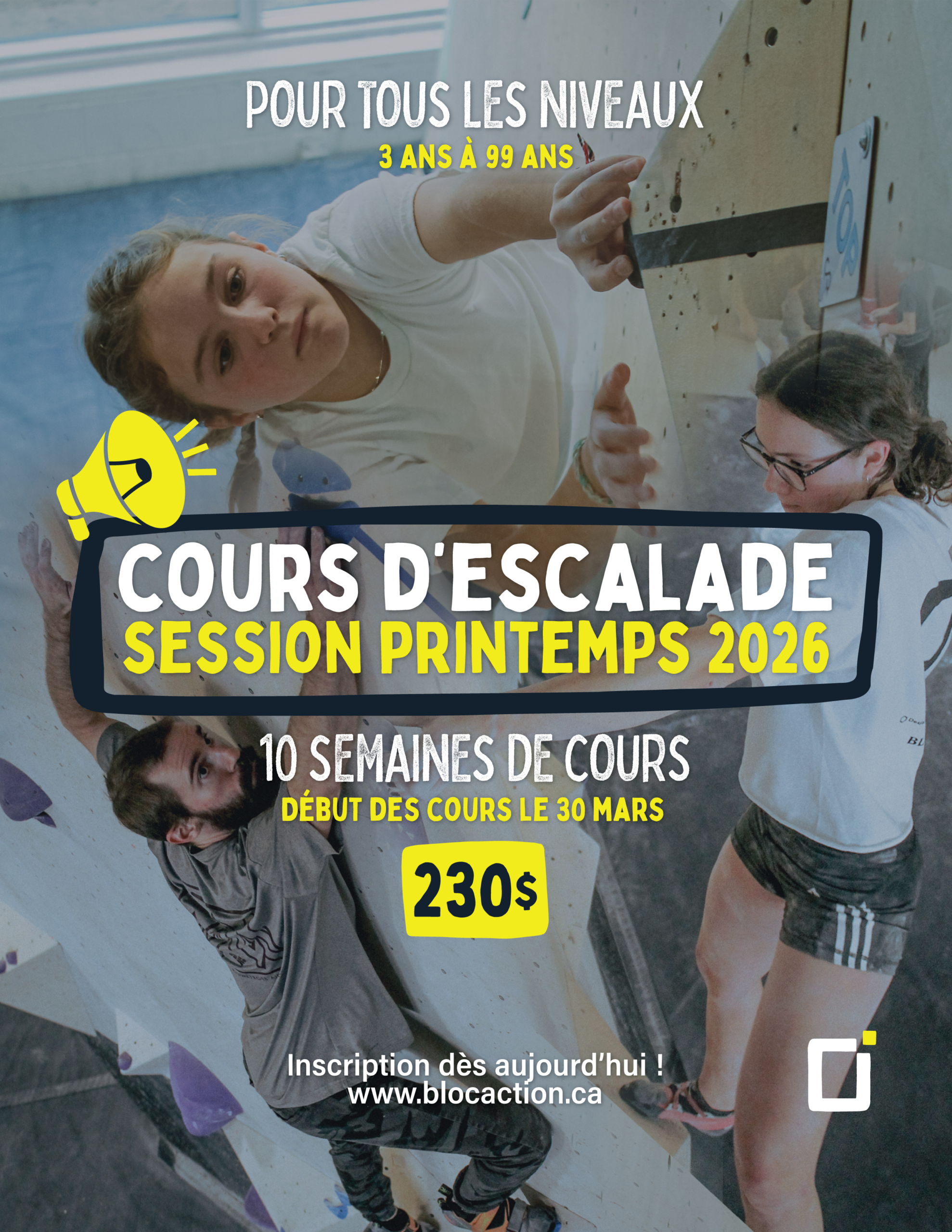 Que vous ayez 3 ans ou 99 ans, une visite chez Bloc Action, c’est du plaisir garanti pour tout le monde ! Avec plus de 5000 pi² de surface d’escalade, une section spécialement conçue pour les enfants et des défis pour tous les niveaux, il y en a pour tous les goûts. Pas besoin d’expérience ni d’équipement, juste l’envie de grimper et de s’amuser. Venez essayer !